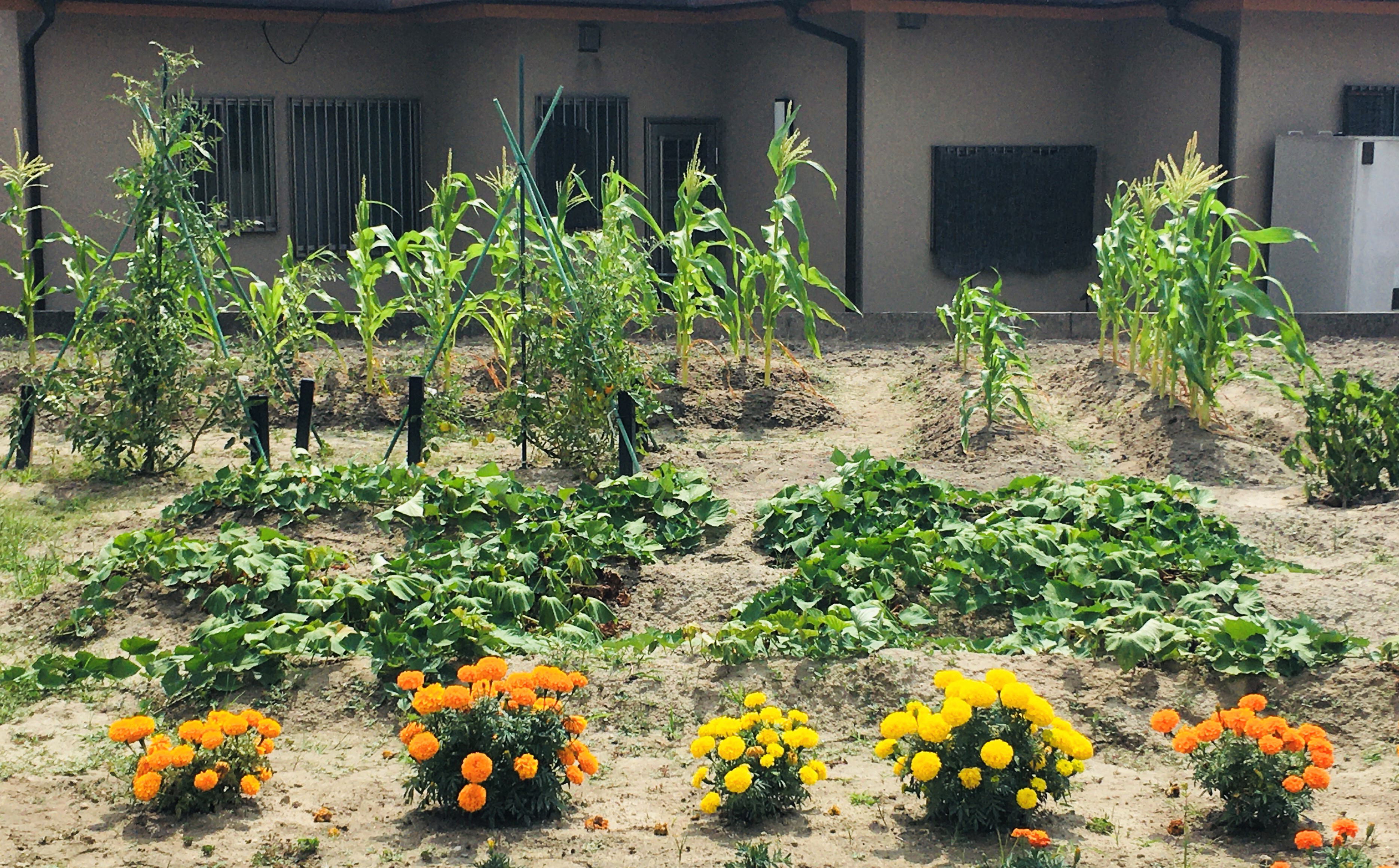 施設の隣には畑があり、季節の野菜や花を育てています。昼食で採れたて新鮮な野菜をお召し上がりいただいています。